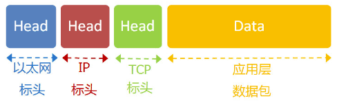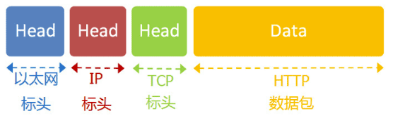 “越走到底层”,就要在数据包前面套一个底层的协议标头
