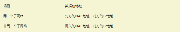 1号电脑把数据包发到网关A,必须知道网关A的MAC地址。所以,数据包的目标地址,实际上分成两种情况: