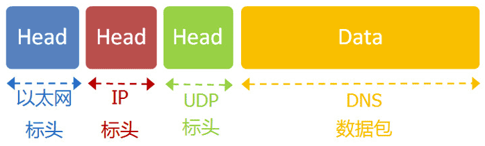 绿色是UPD协议标头 红色是IP协议标头, 蓝色的是以太网协议标头