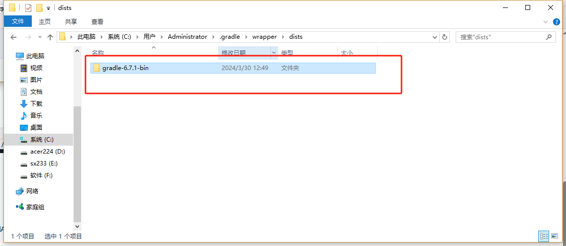2. 找到该位置以后,将dists目录下的文件都删除,我这里只有一个gradle-7.3.3-bin文件,将它删除。