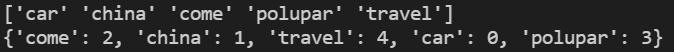 上图为生成的词汇表和特征向量化、矩阵的结果。