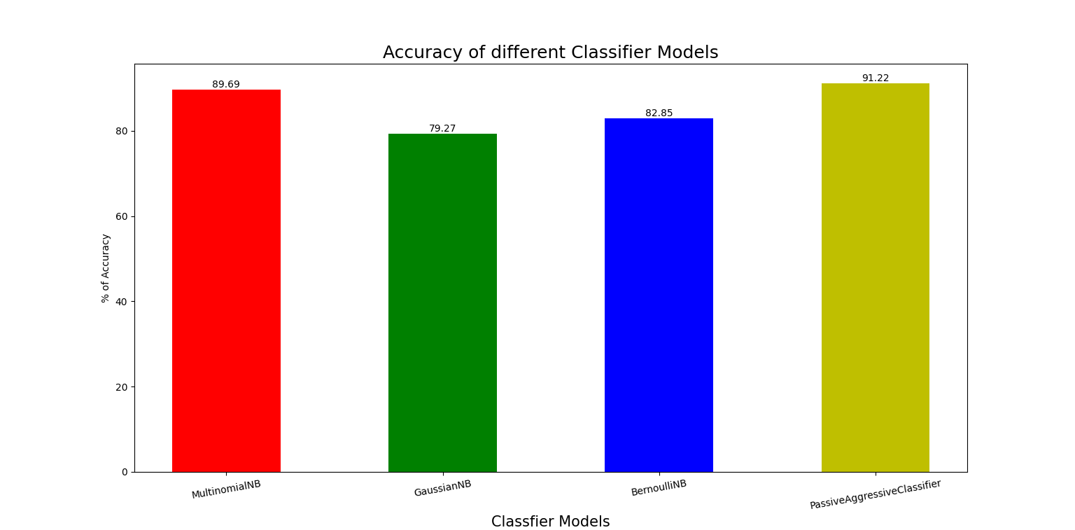 方法:采用监督学习模式,使用 \(TfidfVectorizer,CountVectorizer,PassiveAggressiveClassifier\) ,贝叶斯分类器对文本进行分类。