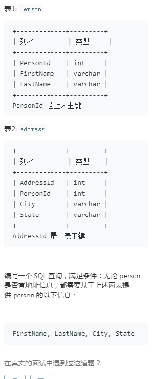 解析:首先是一个SQL查询语句,由条件组合两个表得出应该是连接查询,由条件无论Person表是否有地址信息,都要基于上述两表提供Person表的信息得出应该是用FROM字句中的左外连接,这样在结果集中保留了连接表达式左表中的非匹配记录。
