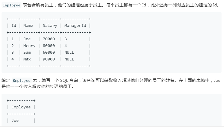 分析:由单表得出是简单查询,条件获取收入超过他们经理的员工的姓名可得出用WHERE子句指定元祖条件表达式条件。在SQL语句中as可以省略但降低了可读性。由条件表达式是工资的比较,而输出数据是员工姓名可得出可用嵌套查询。