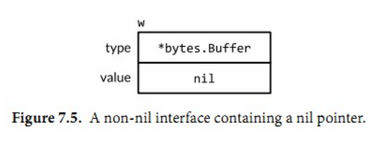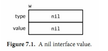 - 可以通过使用w == nil或者w != nil来判断上例的接口值是否为空