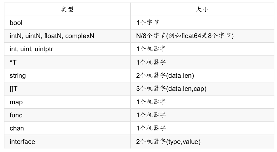 fmt.Println(unsafe.Sizeof(float64(0))) // "8"
