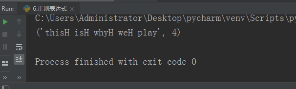 subn ---------- 将数字替换成'H',返回元组(替换的结果,替换了多少次)