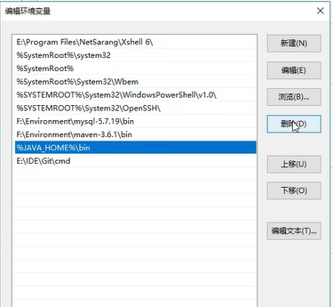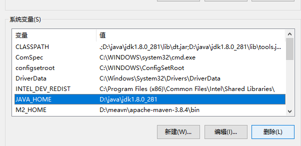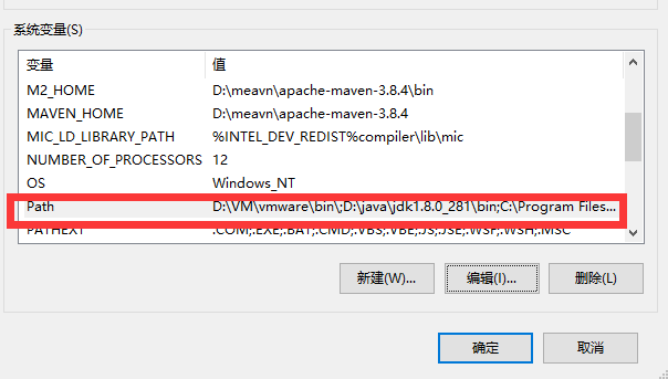 回到环境配置变量,将Java_HOME配置删除,找到path双击打开