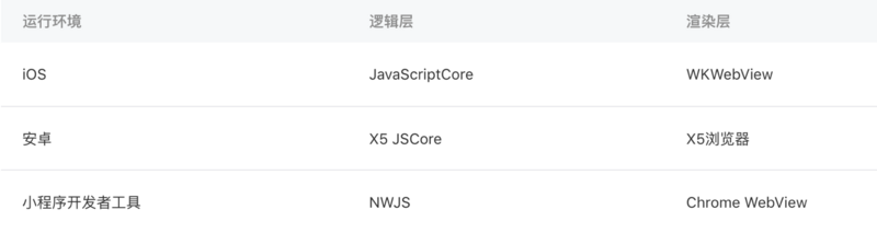 - 我们再看图还发现小程序总共有三种运行环境,并且!每个环境两个线程还都不一样!所以同学们啊,在开发工具上行的在真机上不一定行啊!可别太天真了,一定要在真机上验证功能的可行性!
