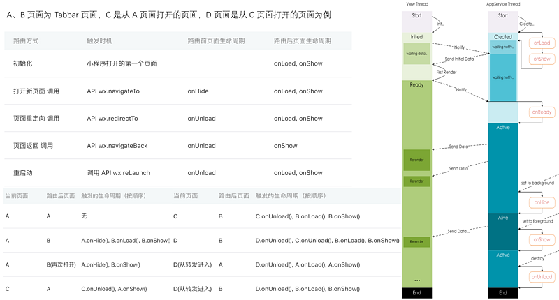 - 渲染层是由多个webview组成的,为什么?为了提供更好的交互体验呀,这样也更贴近原生体验,同时避免了单个WebView的任务过于繁重,同时导致了小程序的生命周期不容易被理解(下面带你理解)