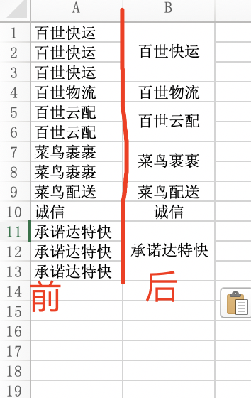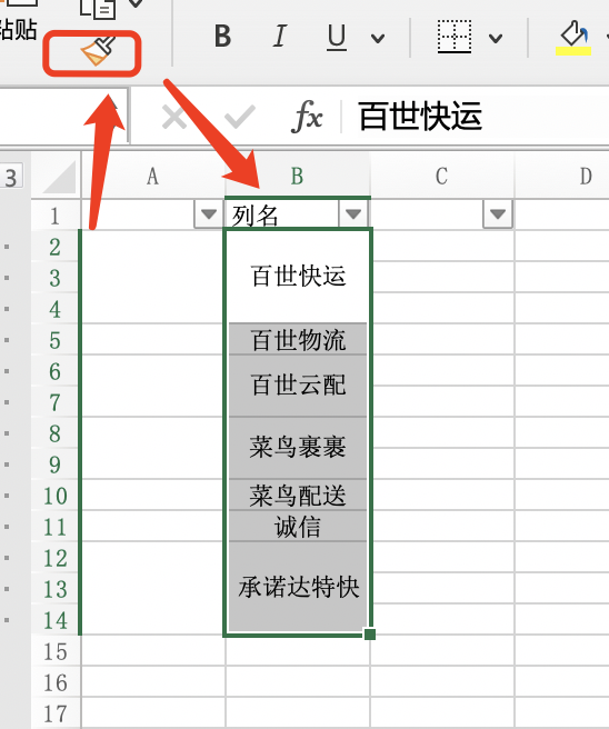 4、最后一步选中第一列的空白区域,点格式刷,然后选中第二列,再删除第一列就行了