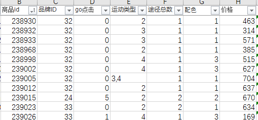 1、数据集介绍,数据是个人工作中的一个数据,是有1万+鞋子的种类,然后想通过价格,人气,配色等看哪些比较类似
