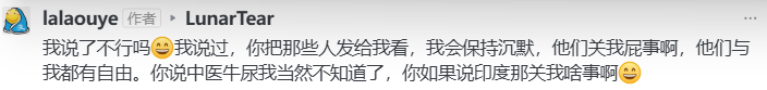 虽然前面我没有意识到搬牛尿就已经不对劲了,但是我意识到了喝牛尿的人同样与我无关,我没有资格去讽刺别人。所以
