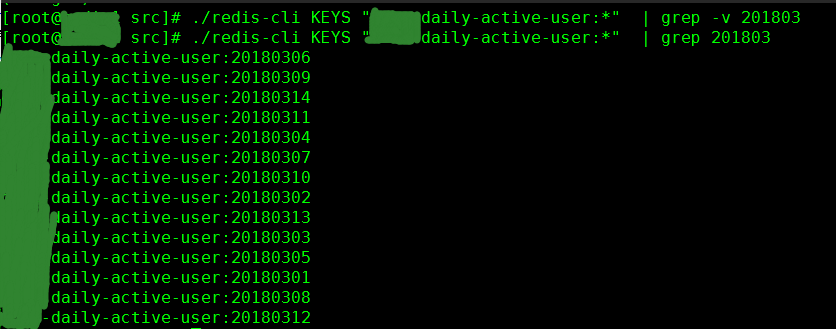 1 ./redis-cli KEYS "xxxx-daily-active-user:*" | grep -v 201803 | xargs ./redis-cli DEL