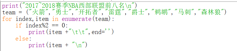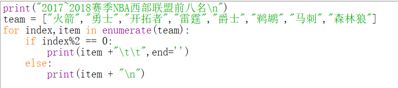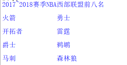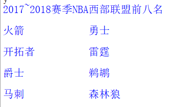 实例07、分两列显示2017~2018赛季NBA西部联盟前八名球队