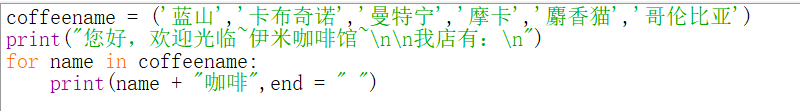 实例05、使用元组保存咖啡里提供的咖啡名称