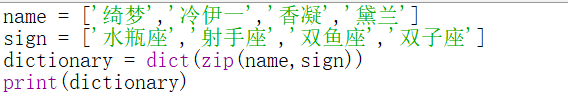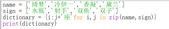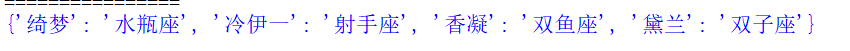 实例11、应用字典推导式实现根据名字和星座创建一个字典