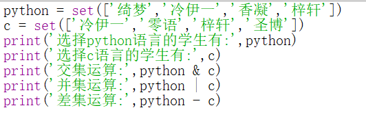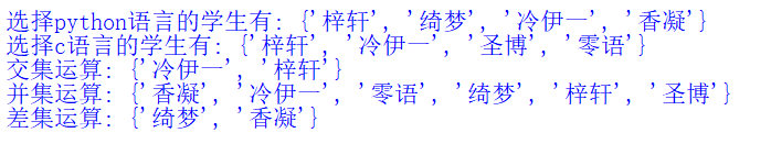 实例14、对选课集合进行交集、并集和差集运算