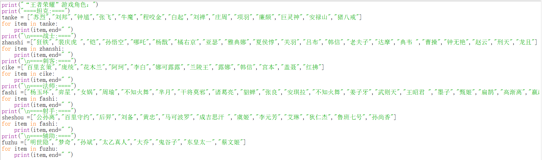 实战一:输出”王者荣耀“的游戏角色