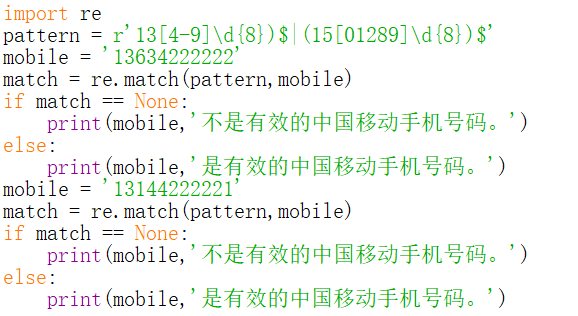实例07:验证输入的手机号码是否为中国移动的号码: