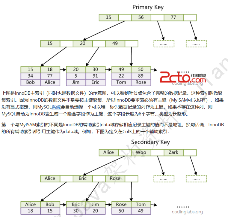 这里以英文字符的ASCII码作为比较准则。聚集索引这种实现方式使得按主键的搜索十分高效,但是辅助索引搜索需要检索两遍索引:首先检索辅助索引获得主键,然后用主键到主索引中检索获得记录。了解不同存储引擎的索引实现方式对于正确使用和优化索引都非常有帮助,例如知道了InnoDB的索引实现后,就很容易明白为什么不建议使用过长的字段作为主键,因为所有辅助索引都引用主索引,过长的主索引会令辅助索引变得过大。再例如,用非单调的字段作为主键在InnoDB中不是个好主意,因为InnoDB数据文件本身是一颗B+Tree,非单调的主键会造成在插入新记录时数据文件为了维持B+Tree的特性而频繁的分裂调整,十分低效,而使用自增字段作为主键则是一个很好的选择。