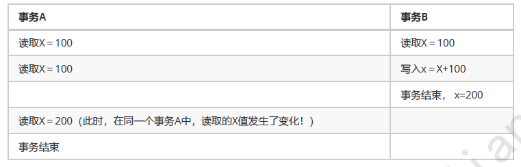 这种情况事务A多次读取x的结果出现了不一致,即为不可重复读 。