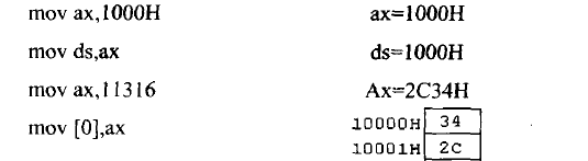 注意:8086CPU不支持将数据直接送入段寄存器的操作,要现将数据送入一个一般的寄存器