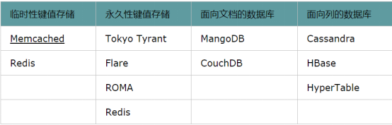 - 键 - 值对存储,列存储,文档存储,图形数据库