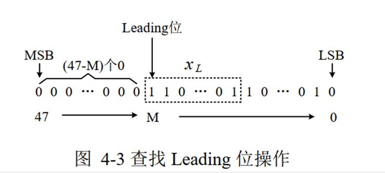 由于采用的找leading位的方式位找非零最高位,因此leading位为floor(log2(x))(从0开始计),令M= floor(log2(x))。