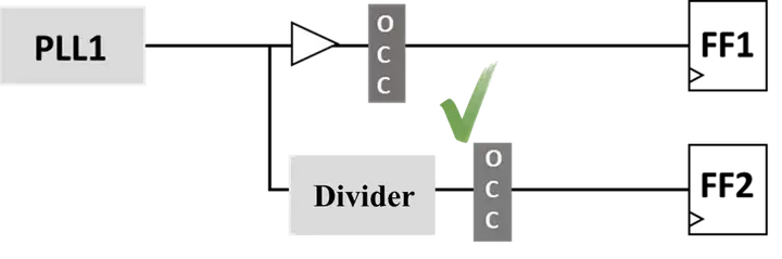 下图为OCC的正确插入方法,驱动divider的clock也是来自于PLL的free-running的clock。