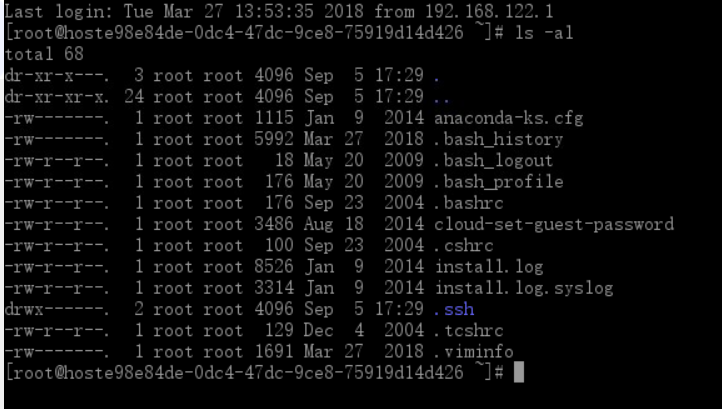 用root登陆系统,敲下“ls -al” ls -al 就是列出所有的档案的详细权限与属性(包括隐藏文件)