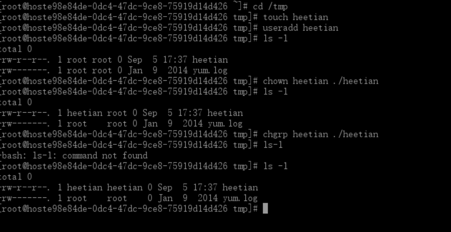 3更改 /tmp/heetian.txt 的用户组和用户名所有者 都为 root