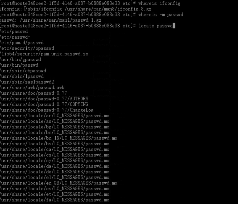 可以看到whereis还找到了ls命令的相关man文件。这条命令一般情况下只找的出命令相关的文件,并不能找出任意指定的文件。