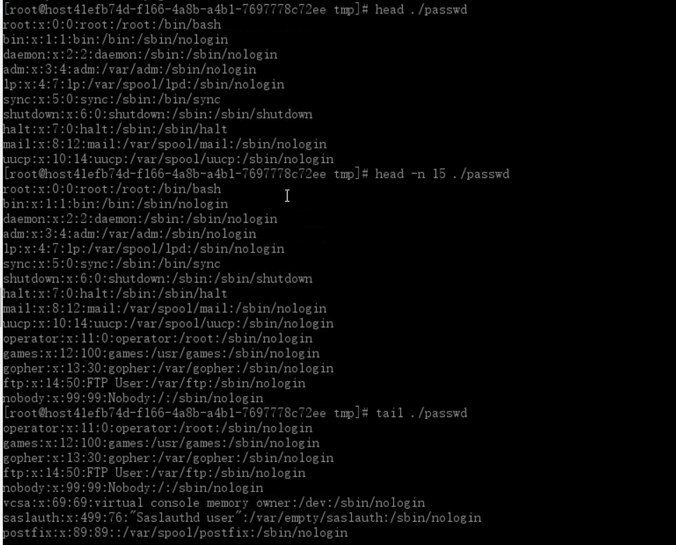 head命令的作用是选取头几行,默认不加参数,是显示头十行的内容。