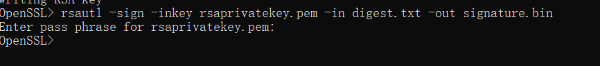 (3)利用上述私钥对摘要digest.txt进行签名,生成签名文档signature.bin