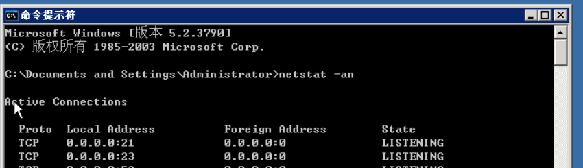 通过netstat –an查看23端口是否开放