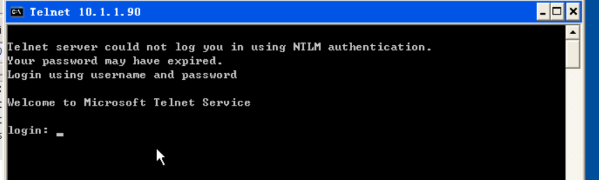 Client:到xp上,安装好Wireshark,然后Telnet server的IP,如telnet 10.1.1.44,然后就能看到欢迎界面