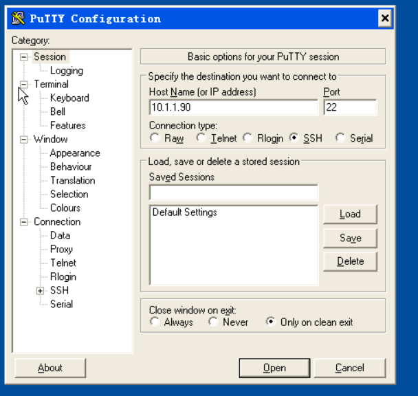 Client:打开putty,输入server的IP,点击open