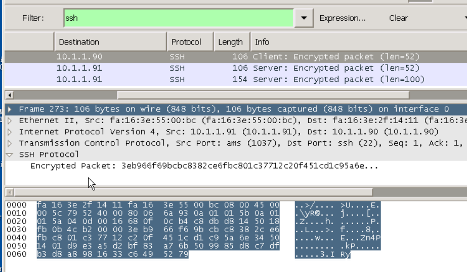 继续打开Wireshark,输入过滤条件ssh。