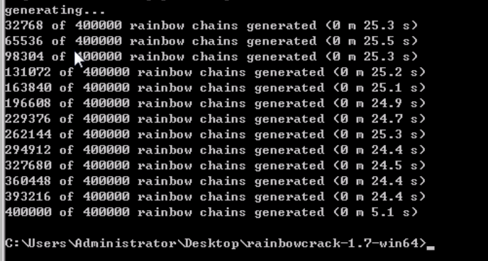 使用命令:rtgen md5 numeric 4 4 0 3000 400000 0