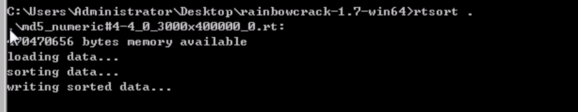 切勿中断rtsort程序; 否则被分类的彩虹表可能会被损坏。
