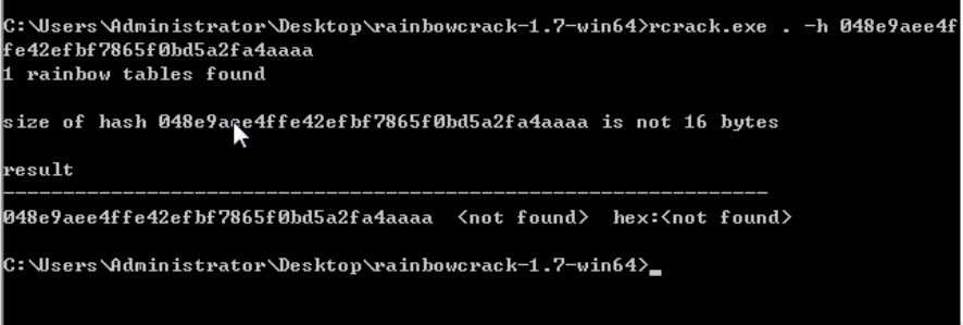 对于单个的哈希值,我们可以直接用rcrack.exe . -h hashnum来进行破解: