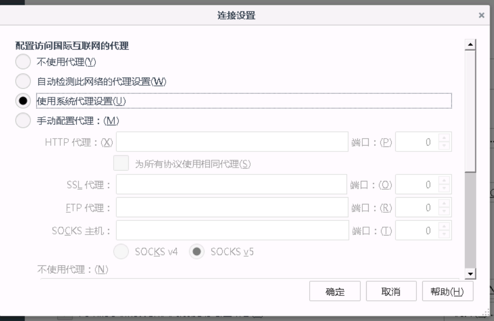 选择使用系统代理设置,点击确认。
