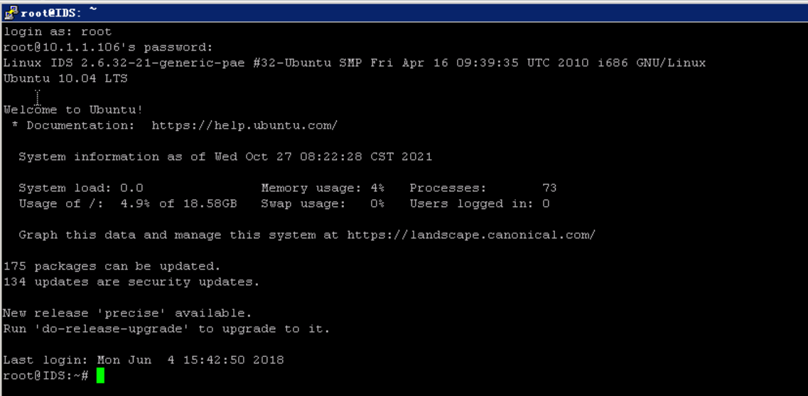 root@IDS:~# mysql -u root -p123456 #登录mysql