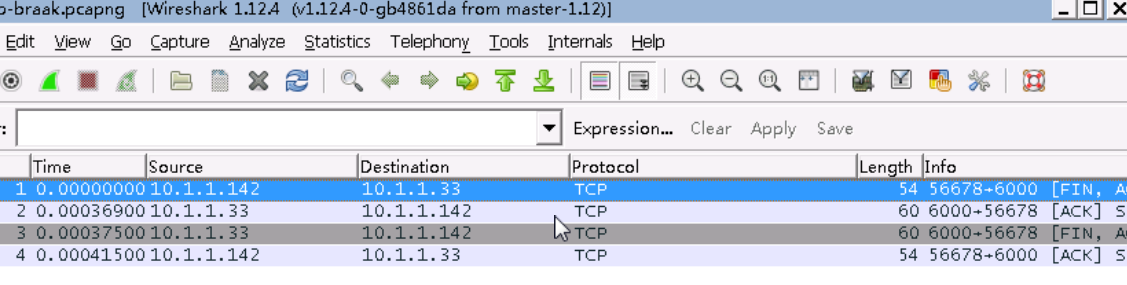 任务描述:TCP的四次断开,也是TCP协议的主要工作之一。下面将通过捕获的tcp-break.pcapng文件,来分析TCP的四次断开。
