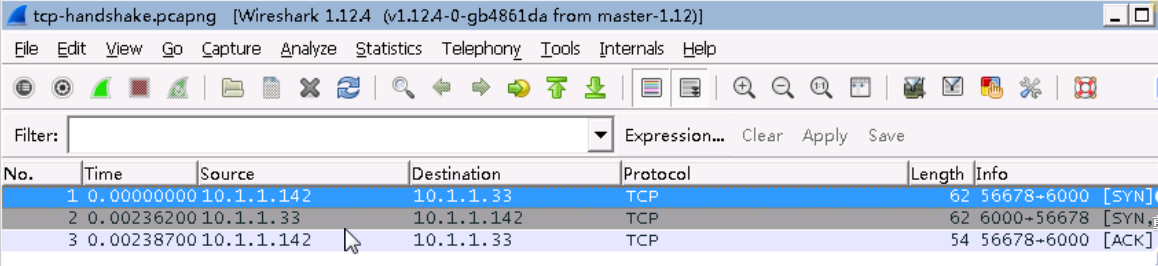 TCP三次握手是理解TCP协议最重要的部分,下面我们就以tcp-handshake.pcapng捕获文件为例,来分析TCP的三次握手