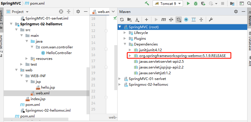 然后确定导入了SpringMVC 的依赖!