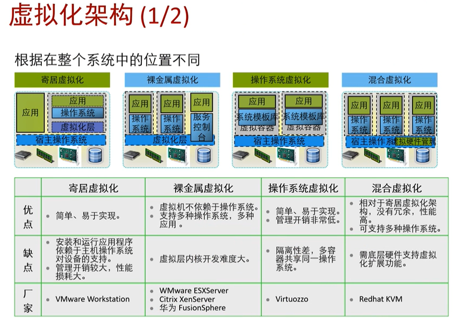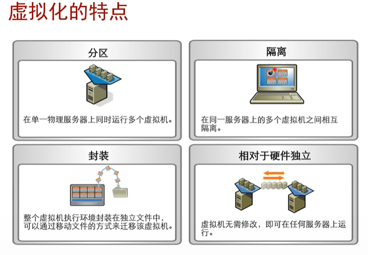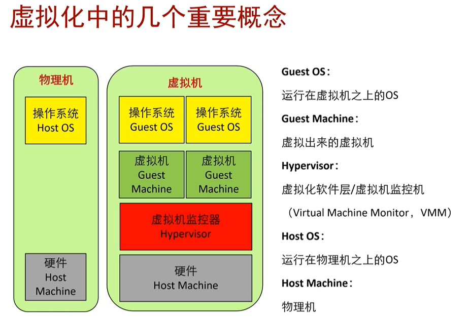 对于物理硬件:1.管理并使用物理资源 2.将物理资源虚拟化