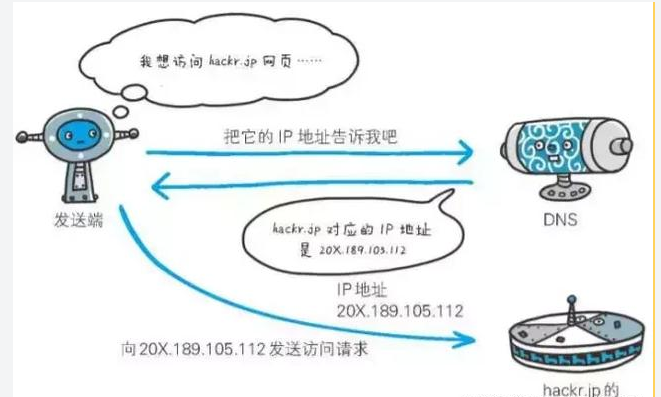 在浏览器输入网址后,首先要经过域名解析,因为浏览器并不能直接通过域名找到对应的服务器,而是要通过 IP 地址。大家这里或许会有个疑问----计算机既可以被赋予 IP 地址,也可以被赋予主机名和域名。比如 www.hackr.jp。那怎么不一开始就赋予个 IP 地址?这样就可以省去解析麻烦。我们先来了解下什么是 IP 地址
