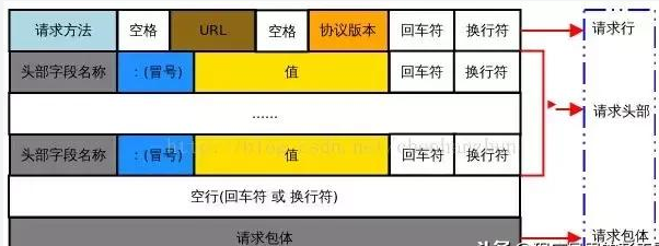 请求报文由请求行(request line)、请求头(header)、请求体四个部分组成,如下图所示: